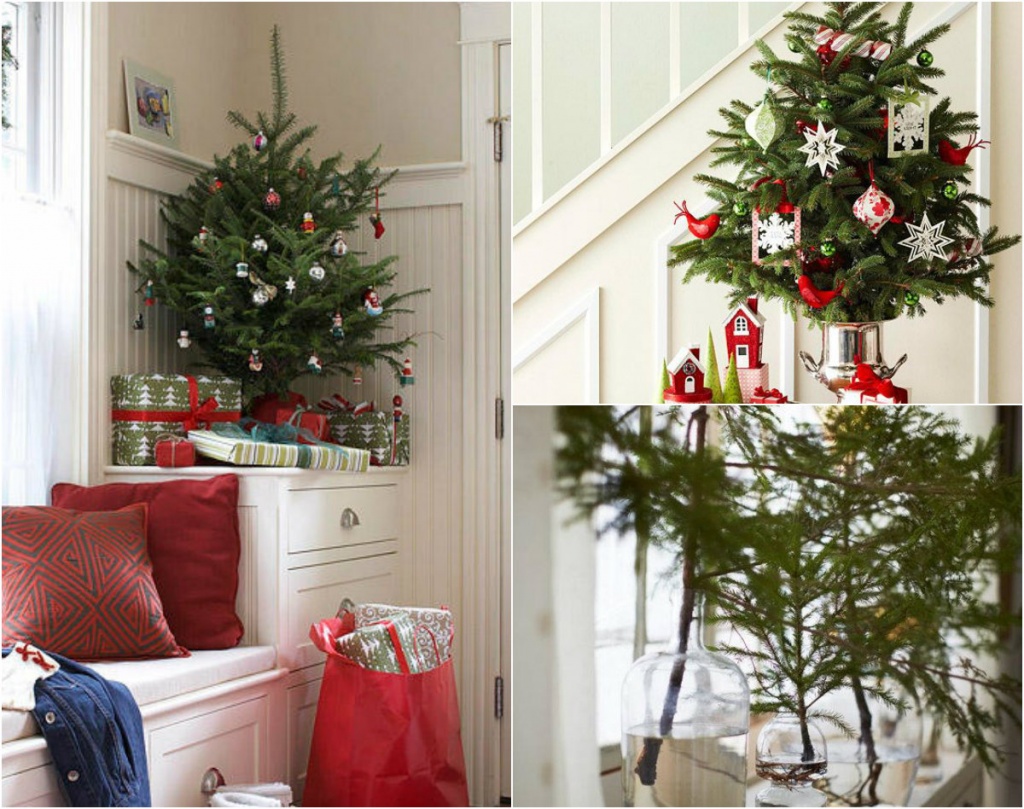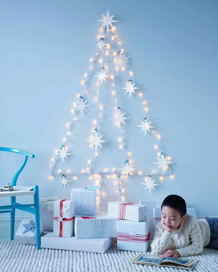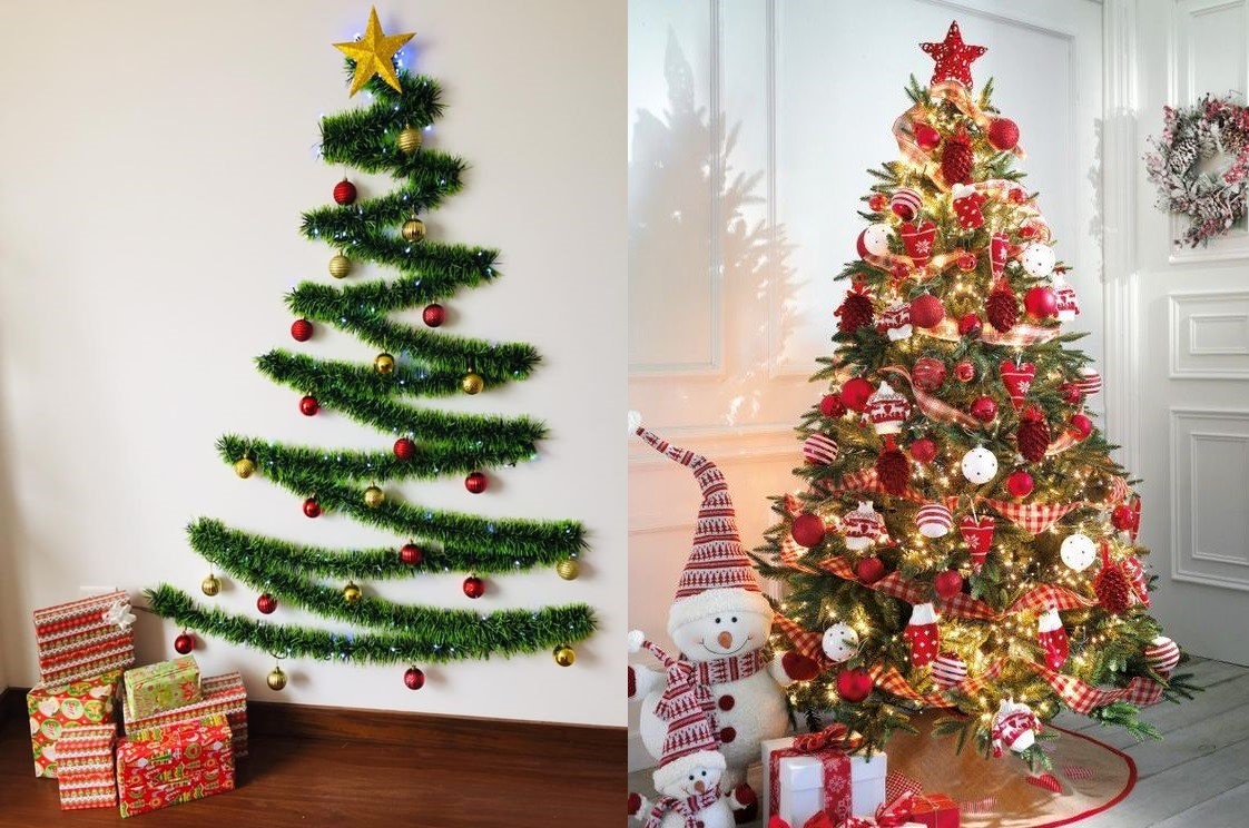 - Cây thông nhỏ để bàn hoặc cây thông dán tường: Phù hợp với không gian nhỏ. Cây thông để bàn có thể được trang trí đơn giản nhưng vẫn mang lại không khí Noel. Cây thông dán tường bằng đèn chớp tạo điểm nhấn ấn tượng và tiết kiệm diện tích tối đa.