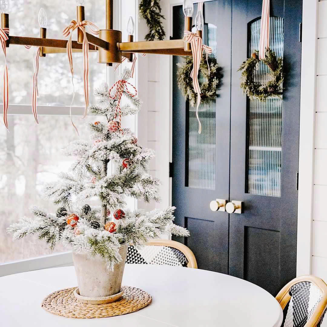 - Tạo không khí ấm áp cho khu vực phòng ăn: Trang trí bằng cành thông, vòng nguyệt quế, quả châu, thay khăn trải bàn chủ đề Noel.