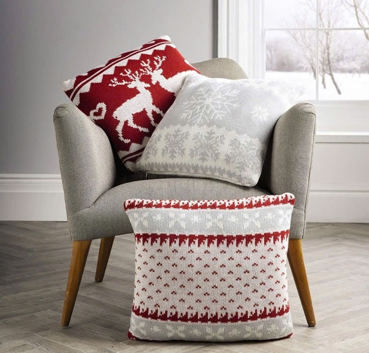 - Tạo điểm nhấn ấm cúng cho ghế sofa: Thay vỏ gối sofa với họa tiết Giáng sinh để làm mới không gian phòng khách một cách nhanh chóng và tiết kiệm.