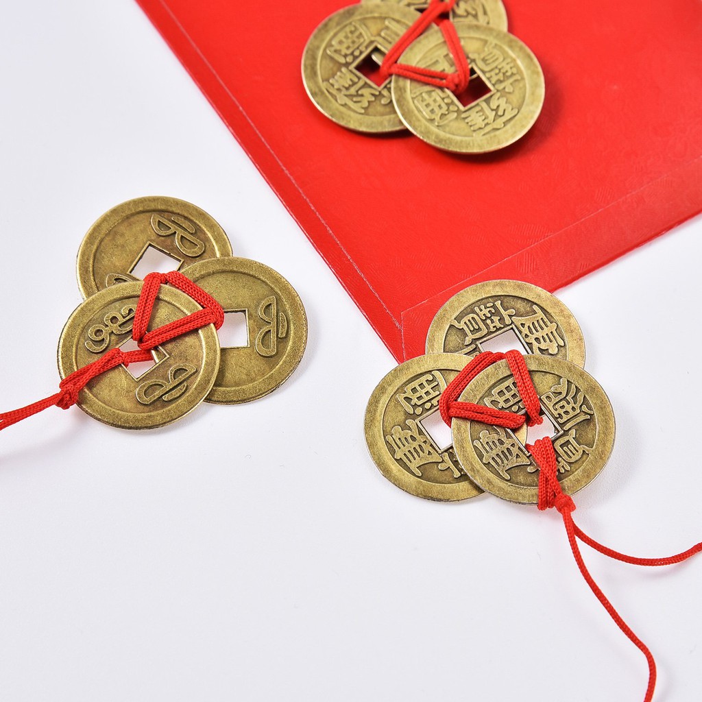 Những đồng xu vàng này có hình tròn với một lỗ vuông ở trung tâm đại diện cho sự hòa hợp của trời và đất. Theo người xưa, ba đồng tiền xu được buộc dây đỏ và để trong túi sẽ mang lại cho bạn rất nhiều may mắn.