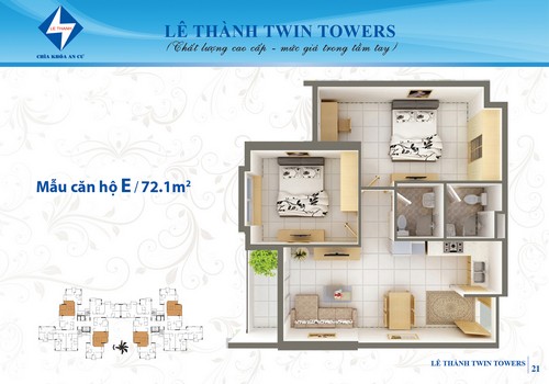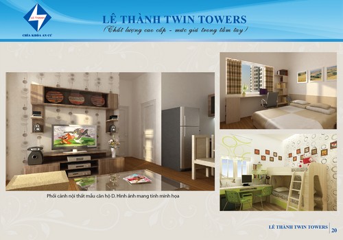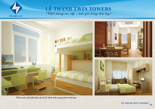 Lê Thành Twin Towers tự hào là căn hộ đáp ứng nhu cầu tốt nhất cho người có thu nhập trung bình. Chú trọng về mặt thiết kế mang lại sự thoải mái ấm áp cho gia đình trong một thành phố công nghiệp hiện đại, các căn hộ nơi đây đều được thiết kế hợp lý, thoáng mát, có hai mặt tiền hứng lấy ánh nắng mặt trời và gió thiên nhiên mang lại cảm giác khỏe khoắn, thư giản cho gia đình sau một ngày lao động mệt nhọc.