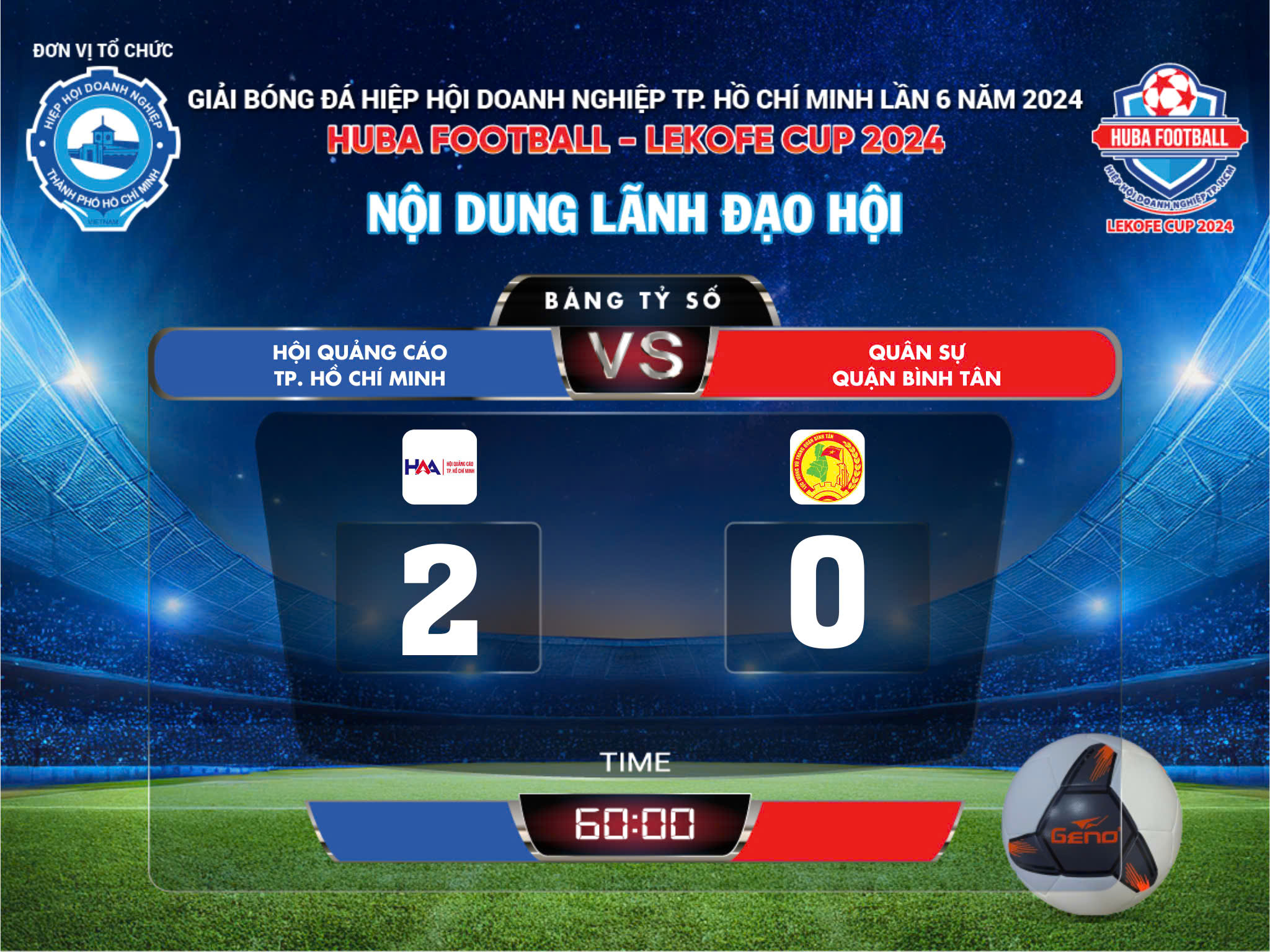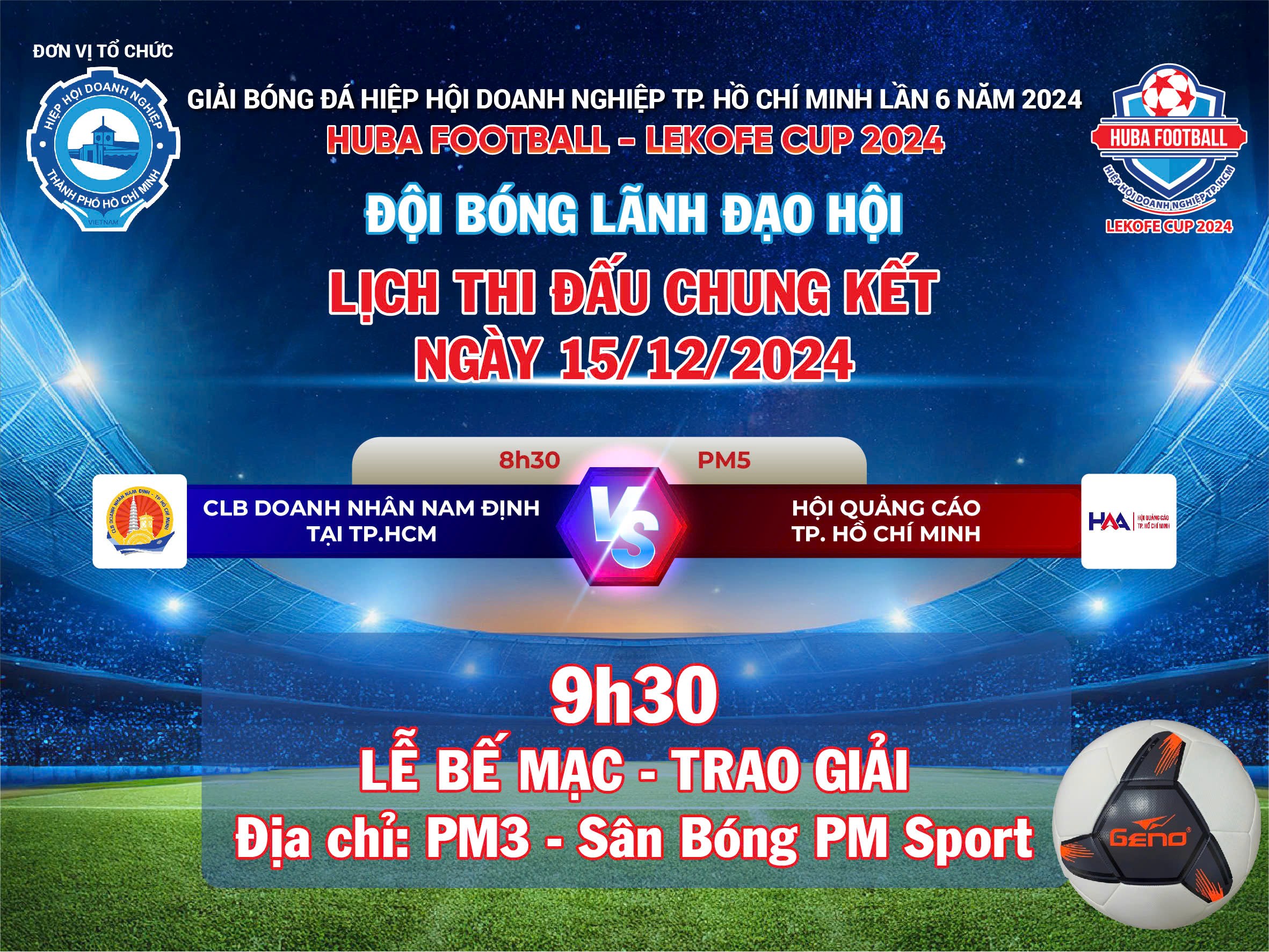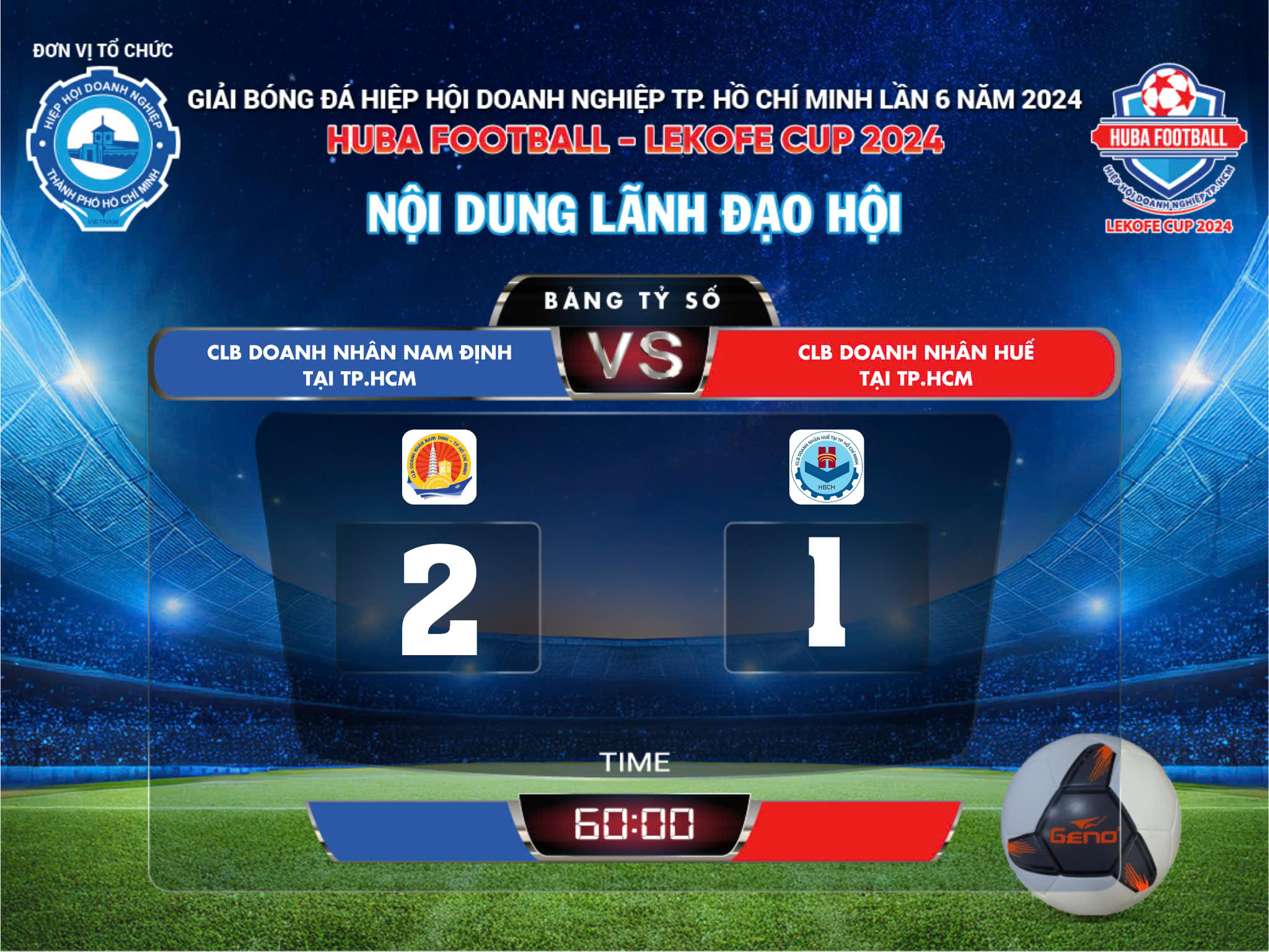 🎉 Xin chúc mừng hai đội CLB Doanh Nhân Nam Định Tại TP HCM và Hội Quảng Cáo TP HCM đã chính thức ghi tên vào trận chung kết Huba Football - Lekofe Cup 2024 Nội Dung Lãnh Đạo Hội!