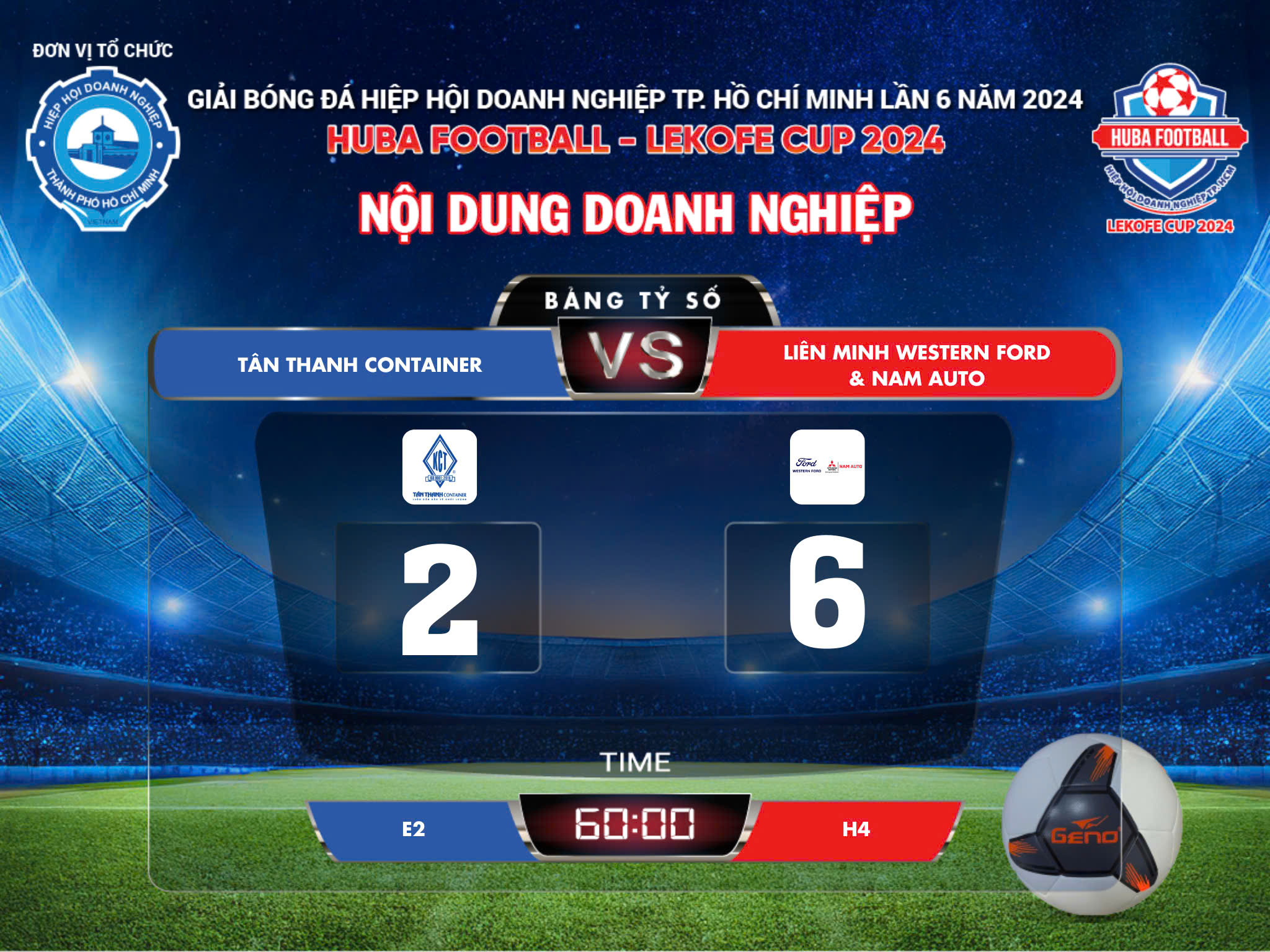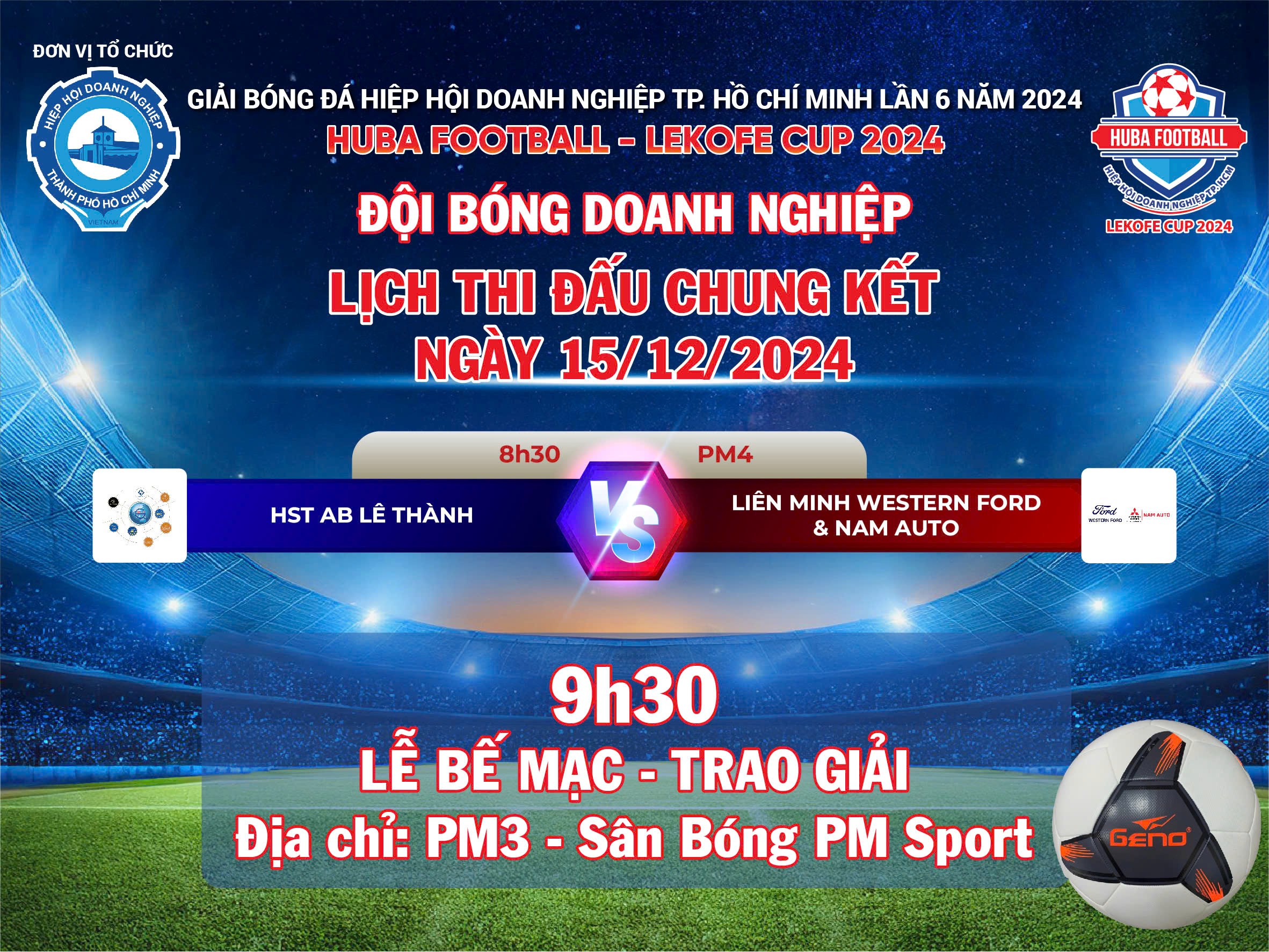 🎊 Xin chúc mừng hai đội HST AB Lê Thành và Liên Minh Western Ford & Nam Auto đã chính thức ghi tên vào trận chung kết Huba Football - Lekofe Cup 2024 Nội Dung Doanh Nghiệp!