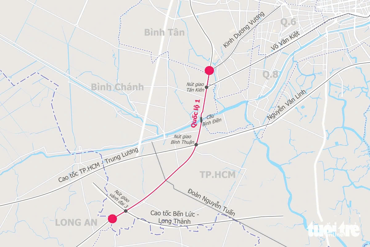 Dự án này sẽ bao gồm việc mở rộng quốc lộ 1 sang hai bên, tổng mức đầu tư ước tính khoảng 15.897 tỷ đồng, và không yêu cầu tháo dỡ hai cầu Bình Điền và cầu vượt nút giao Bình Thuận. Sau khi hoàn thành, quốc lộ 1 sẽ có thêm 4 nút giao khác mức, bao gồm nút giao Tân Kiên, Bình Thuận, Đoàn Nguyễn Tuấn và vành đai 3 TP.HCM, nhằm tăng cường hiệu quả và an toàn giao thông.