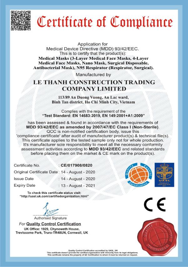 Không chỉ áp dụng quy trình sản xuất với công nghệ tự động hiện đại, đáp ứng các tiêu chuẩn kép về an toàn vệ sinh và chất lượng sản phẩm, nhà máy Dr Medical Mask còn áp dụng hệ thống quản lý tiên tiến theo các tiêu chuẩn quốc tế được áp dụng rộng rãi trên toàn thế giới. Sản phẩm khẩu trang y tế Dr Medical Mask tự hào được chứng nhận đạt các tiêu chuẩn chất lượng trong nước và quốc tế, an toàn với người sử dụng và phù hợp với những tiêu chuẩn, yêu cầu khắt khe của các nước Âu, Mỹ.