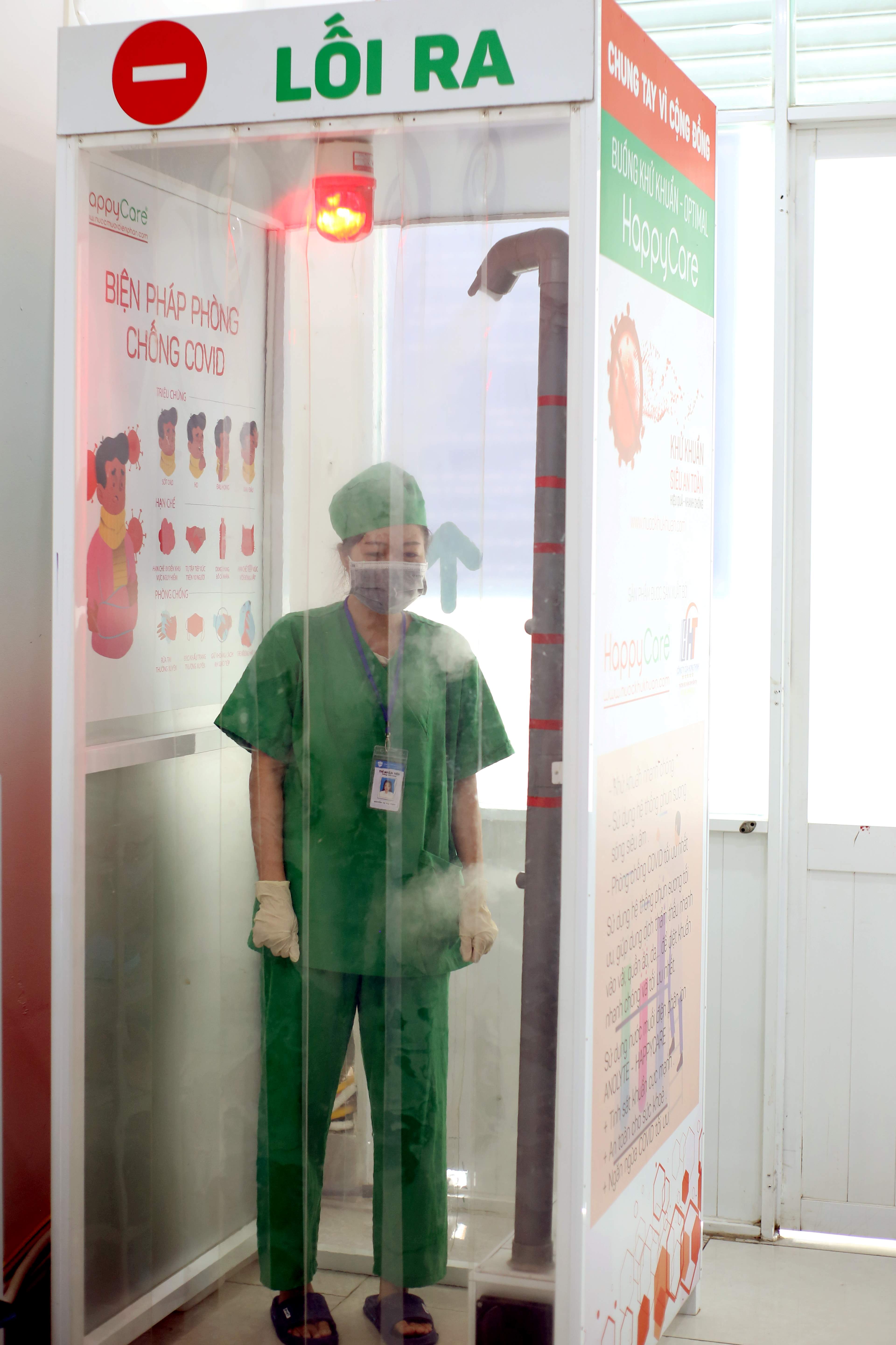 Vật liệu sau khi được kiểm tra chất lượng sẽ được đưa vào phòng khử khuẩn chuyên dụng. Tại đây, toàn bộ vật liệu dùng để sản xuất khẩu trang sẽ được khử khuẩn trong 45 phút.