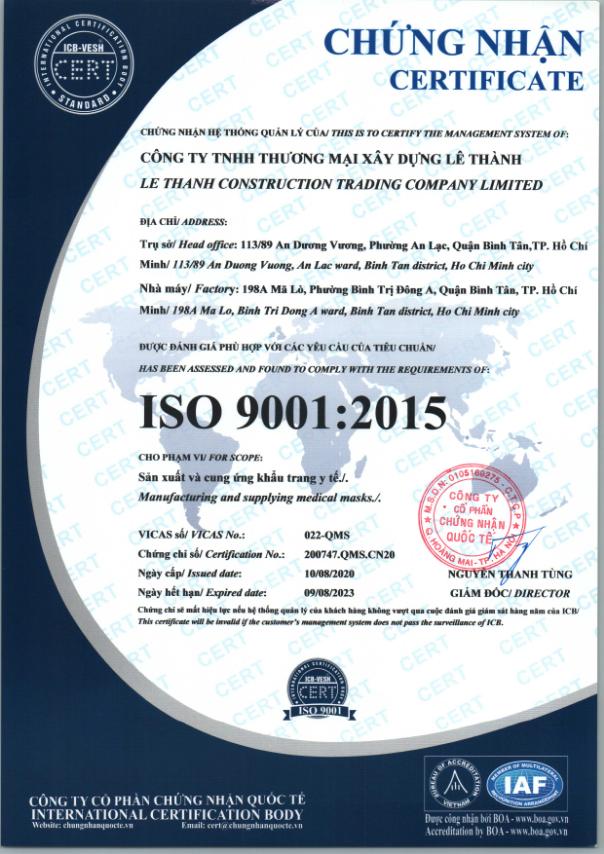 1. Tiêu chuẩn ISO 9001:2015: Tiêu chuẩn quốc tế về Hệ thống quản lý Chất lượng, có giá trị trên phạm vi toàn cầu