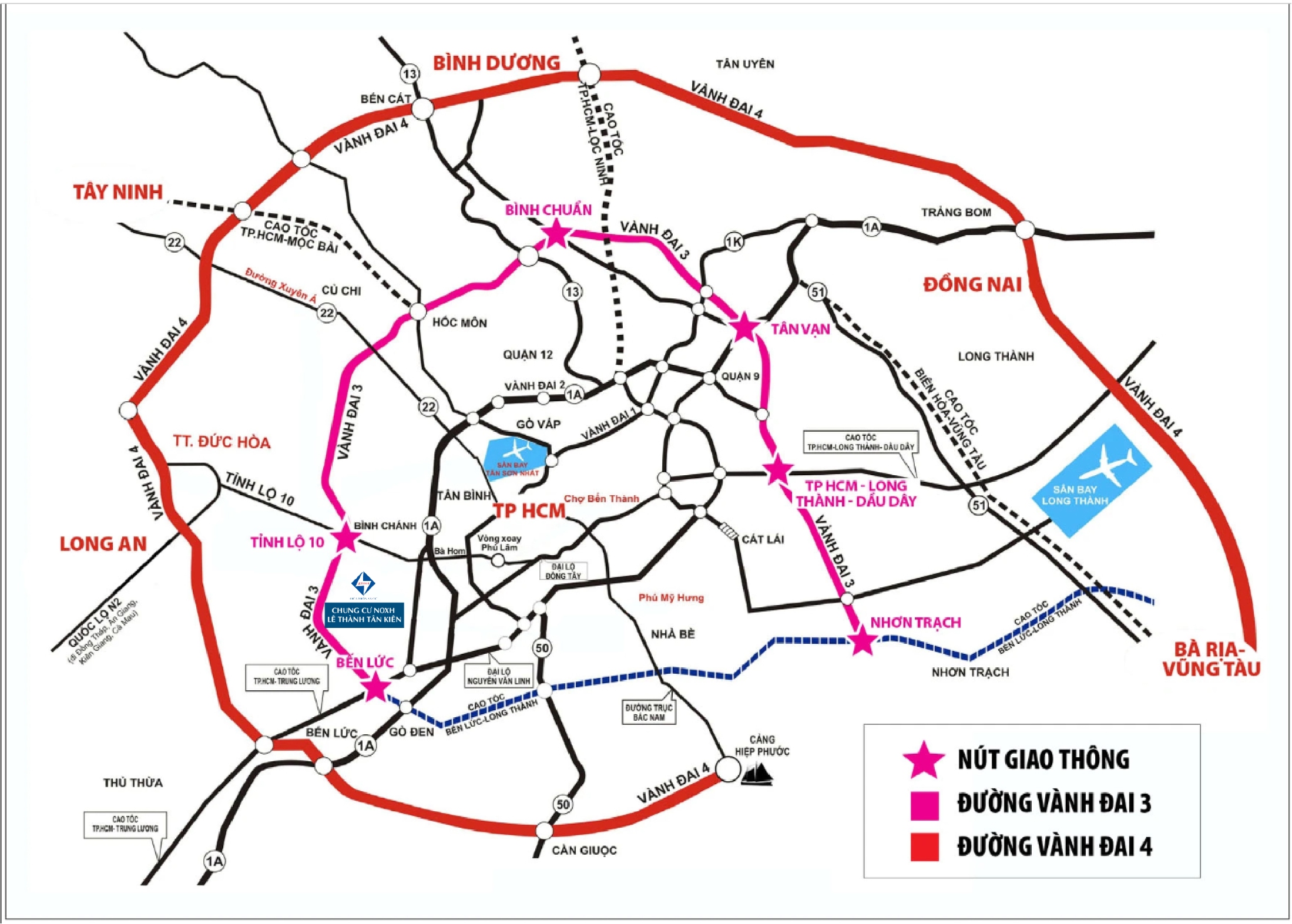 Đường vành đai 3 không vận hành riêng lẻ mà được quy hoạch liền mạch với 5 tuyến cao tốc hướng tâm, gồm: thành phố hồ chí minh - Trung Lương, thành phố hồ chí minh - Long Thành - Dầu Giây, Bến Lức - Long Thành, thành phố hồ chí minh - Mộc Bài và thành phố hồ chí minh - Chơn Thành. Chưa kể, trong vòng 5 đến 15 năm tới, vành đai 3 sẽ cùng với các tuyến vành đai 2, vành đai bốn tạo thành mạng lưới giao thông khép kín, bao quanh thành phố hồ chí minh. Nắm rõ các thông tin này nhà đầu tư nhạy bén đã tìm cách săn bất động sản để đón đầu.